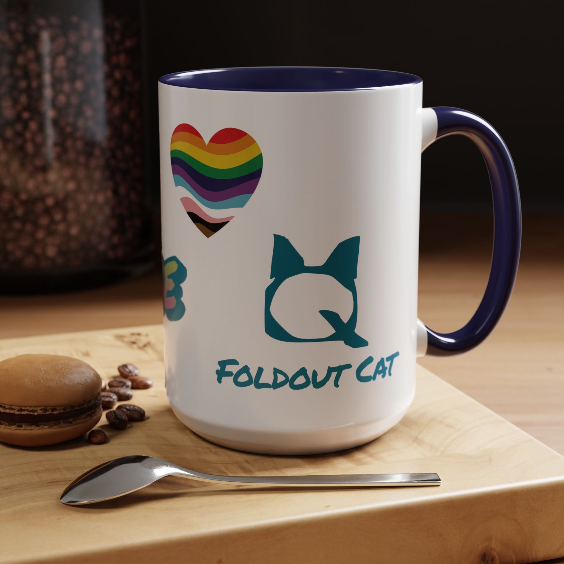 A large mug perfect for fiber arts enthusiasts, keeping your favorite cuppa nearby during your next Foldout Cat yarn project. This mug is designed for everyone who enjoys crafting and sipping on a hot drink. Perfect for cozy evenings and crafting sessions.